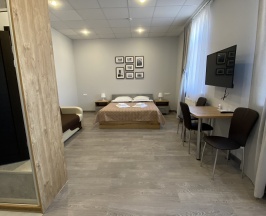 Номер "Люкс" 2 категории удобный, теплый, уютный номер с двуспальной кроватью, диваном, ванной комнатой, мини-кухней. Возможно размещение до 3-4 человек.