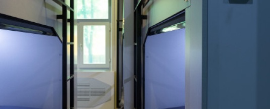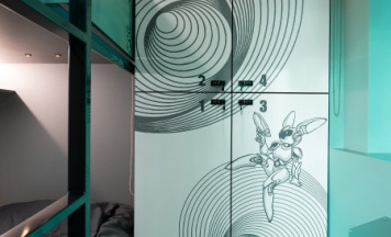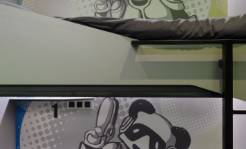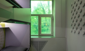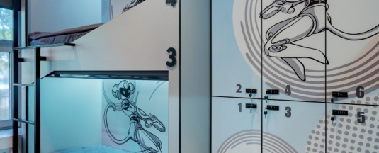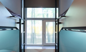 В комнатах высокие потолки, так что даже на втором ярусе просторно и удобно. Есть индивидуальные шкафчики с кодом, а на кроватях плотные заслонки. Комфортно!