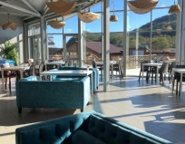 На территории базы есть замечательное кафе с панорамным видом, с разнообразной кухней. В этом году в кафе была очень вкусная китайская кухня. Находясь на базе, никогда не переживали за своих детей, так как база закрытая, и дети всегда на виду. Детская площадка расположена так, что её видно со всех сторон.