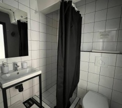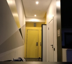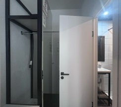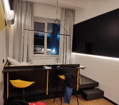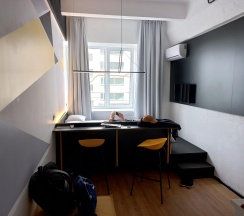 Компромисс между гостиницей и общагой. Причём довольно дорогой. За эти деньги можно двухкомнатную квартиру снять. Кухня общая, довольно скудная. Один чайник на всех. Ну хоть по кулеру на этаже поставьте, деньги такие за что берёте? Странное решение сделать между комнатой и туалетом непрозрачные стёкла. Для чего? Чтоб с кровати смотреть как кто-то на горшке сидит? Если бы не резиновые тапочки (свои), разбил бы ноги об порог, который посреди комнаты зачем-то сделан.