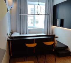 Неплохая гостиница, расположение удобное, номер чистый, матрас не очень удобный (очень мягкий, как будто только из паралона), в нашем номере была кухня с раковиной, холодильником, микроволновкой и набором посуды на двоих. Слышимость очень большая, слышно что происходит в соседнем номере и коридоре.