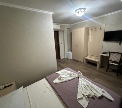 Понравилось: Ночевали проездом в Крым, отель находится рядом с трассой. Заселялись вечером, с ребёнком. Приняли отлично, предложили сразу поменять номер с большой кроватью, не тот что бронировали. Утром ранний выезд, накормили завтраком раньше на час. Спасибо большое. Рекомендую