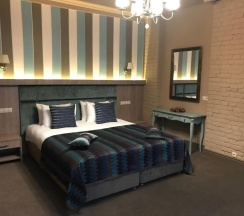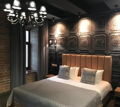 Сочетание грубой шероховатости состаренной кирпичной кладки с современными предметами интерьера, оригинальной отделки остальных поверхностей стен, необычного декора, создает совершенно неповторимый дизайн номера.