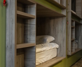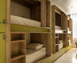 Спальное место в 8-ми местном номере.Каждое спальное место оснащено закрывающимися шкафчиками для индивидуального хранения, а также собственными розетками. Кондиционер в номере. Бесплатный WI-FI. Современная оборудованная общая кухня: холодильник, индукционная плита, микроволновка, чайник, вся необходимая посуда для приготовления и приёма пищи, а также бесплатный чай и кофе для Вас.