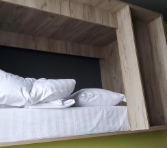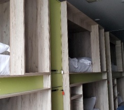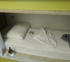 Хороший хостел, всё новое и качественное. Но есть несколько спорных моментов. Освещение в душе имеет датчик движения, и чтобы его включить после отключения - приходится ходить взад вперёд, просто махать руками не помогает. А ещё оно иногда глючит и мигает как страбоскоп. Я бы убрал этот датчик совсем. Кровати в шестиместных комнатах ограничены по длинне, да я помещаюсь, но в притык. Подушки слишком жёсткие.