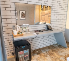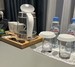 Не понравилось: Номер маленький. Шкаф для одежды неудобный и тоже маленький. Верхнюю одежду надо все время упихивать в этот микроскопический шкаф, крючков рядом со входом в номер нет. В ванной всего один крючок, на котором надо уместить халат и полотенце- очень неудобно. Нежели сложно было прикрепить еще крючки для одежды в номере и в ванной? Нет полотенцесушителя, мокрые вещи негде просушить (!!!). Раковина на низком уровне, маленького диаметра. Чтобы умыться надо ОЧЕНЬ постараться, чтобы не расплескать воду на пол.