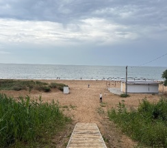 Уютные номера. Телевизор,сплит система, санузел,кухонный уголок .Море в 10 минутах ходьбы. Пляж песчаный. Сад с беседками . Стоянка. Можно остановиться на ночёвку или приехать в отпуск на море. Тихий поселок.