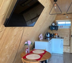 Сегодня отдыхала в этом прекрасном месте. Здесь есть всë для комфортного отдыха (даже можно заказать еду и покурить кальян). Очень тепло и комфортно, минусов совсем не увидела. В домике очень чисто и приятно находиться. На улице есть кролики и батут и это прекрасное дополнение. Есть телевизор с приложениями онлайн кинотеатра и колонка. Я выиграла аренду домика на сутки, все условия были выполнены компанией, а это хороший показатель. Мне безумно понравилось, отдохнули от всей души!!! Обязательно приедем ещë и всем советую.