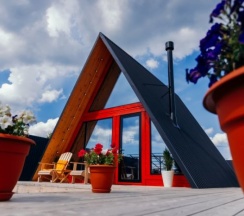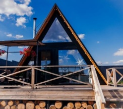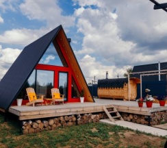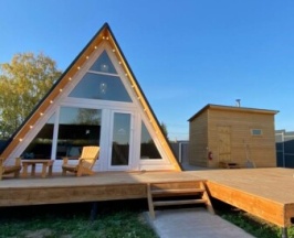 Уютный треугольный домик с черным фасадом, вмещает до 4-ех гостей