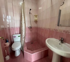У гостевого дома хорошее расположение. Рядом кафе, магазины. До моря минут 10 - 15 неспешным шагом. Чистый бассейн с теплой водой. Во дворе оборудована беседка, мангальная зона, детский игровой уголок, качели. Фото номеров на сайте соответствуют реальности. Ремонт «свежий». Есть лифт. Останавливались в 4-хместном номере. На персональной кухне есть вся необходимая утварь. Кровать и диван широкие, матрацы и подушки удобные. Есть полотенца. Единственное, что хотелось бы добавить - это полочка над раковиной и мыло для гостей. Проживанием остались довольны
