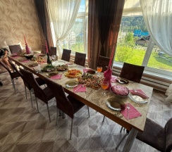 Отдыхали в этом доме большой компанией 26-28 сентября. Чистый и уютный дом, есть все необходимое, 7 комнат и большая гостиная, которая подойдёт для празднования какого-нибудь мероприятия. Есть банька, мангальная зона со всем необходимым и очень красивый вид с балкона. Добрые и отзывчивые хозяева. В следующий раз обязательно приедим к вам!