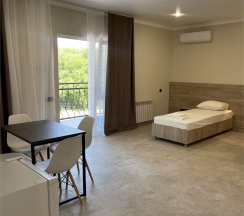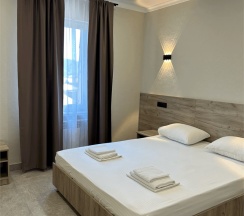 Великолепный отель, номера отличные по сравнению с другими отелями, ремонт в них свежий. Вечером можно пить вино на крыше и есть фрукты, которые кстати не вкусные))) ещё один плюс находится немного дальше от центральных улиц и не так шумно, есть кухня для готовки, мангал, бассейн. владельцам желаю сделать подогрев бассейна и обустроить более менее парковку. А так всё замечательно!