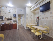 Лучший хостел в котором я останавливался. В симпатичном здании с настоящей питерской парадной и старинной печью. Ценители оценят!) Правильнее сказать что это капсульный отель, где у каждого в распоряжени не просто капсула, а мини-комната с кроватью, полочками, шкафчиком. Удобное распоряжение розеток. Их целых три возле кровати. Два варианта освещения. При этом плотные шторы-занавески полностью закрывают капсулу - "купе". В этом отеле все продумано до мелочей. Например в занавесках есть магнитики, которые не позволяют появляться щели между занавесками. На втором этаже проведена вытяжка чтобы не было душно, которая регулируется и можно настроить под себя. Санузлов много, очередей почти нету. Полотенца выдаются бесплатно. Тапки тоже можно взять общественные если нету своих. Везде чистота. Кухонно-чилловая зона очень удобна, много столиков и розеток, все есть для приготовления еды. Есть фильтр-система для набора чистой воды. Два больших холодильника, каждому предоставляется лоток в холодильнике и полочка для сухих продуктов. И везде полный порядок. Все подписано где что. При заселении разъясняют все правила и показывают видеогайд с правилами жизни этого места. Персонал следит за порядком. Благодаря четким правилам, заселяются только культурные адекватные люди, поддерживающие комфорт, что является редкостью в обычных хостелах. Действует жесткий запрет на алкоголь и нарушение правил объекта. В этом наверно самая большая ценность этого объекта размещения - приезжаю уже второй раз и ощущаю себя в комфорте, как дома.