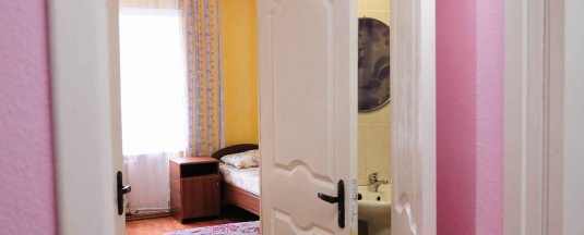 В номере: кровати, телевизор, чайник, тумбочки, вешалка, постельное белье, без холодильника. Душ, умывальник и туалет – общие на 2 номера. Уборка номера осуществляется ежедневно. Смена постельного белья происходит раз в пять дней или по требованию постояльца.