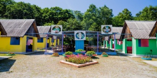В базе отдыха есть кондиционер в номерах, бассейн и другие удобства.