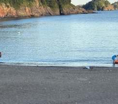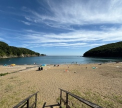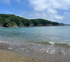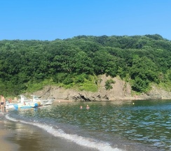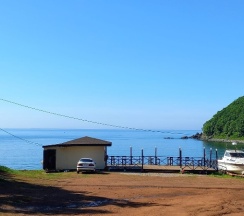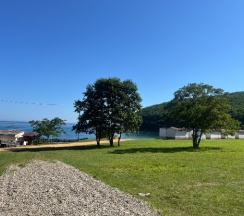 Замечательная база отдыха. Были в первый раз. Красивые виды закрытой бухты и открытого моря вдали. Море чистое, вода прозрачная, берег песок, дно камешки, купаться понравилось, температура воды комфортная. Зеленые лужайки на базе в окружении сопок с лесом и скалами возле моря, очень красиво.