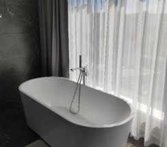 Устраивает абсолютно все: чисто, современно, уютно, качественная мебель и удобная кровать и подушки (для меня это очень важно). Если кому необходимо, в каждом номере холодильник и микроволновка, есть номера с полноценной кухней. Расположение очень удобное. Вежливый персонал. Хорошие завтраки на втором этаже (если честно, очень не хватает тех самых четырех сетов..., кто помнит, тот поймет...))) Номера на любой вкус, но если для вас, как и для меня важен вид из панорамного окна "в пол" и размер номера, не рекомендую стандарный номер, он очень мал(( Поэтому, к рекомендации, все что выше стандарта) Там вам обеспечен шикарный вид на город и море! Особая благодарность администратору Анечке, выручала информацией по многим вопросам. До новых встреч, любимый NewLiving.