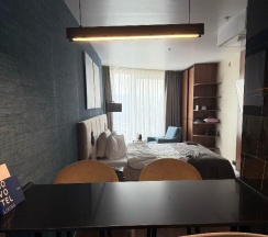 В целом отель произвел приятные впечатления, проживали в номере улучшенная студия. Сначала о плюсах: в номере очень чисто, просто не к чему придраться, убирались вовремя, персонал очень доброжелателен, номер современный с хорошей сантехникой и оборудованием, вид из окна красивый. Есть несколько минусов больше для руководства: согласно фото на сайте номер выглядел по другому - либо с качелей и диваном, либо с двумя панорамными окнами. По факту номер был длинный и темный, ни дивана ни качели не было. Фактически посидеть полюбоваться видом из окна второй человек не мог - было одно кресло. Учитывайте это при бронировании. Также даже в улучшенном номере не было халатов хотя на сайте в оснащение номера они входили. Звезду за это снижать не стала. В целом проживание оставило приятные впечатления.