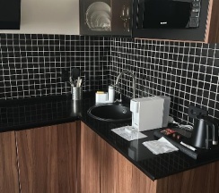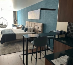 Из минусов: расстроило, что мы бронировали один номер, но в итоге получили как будто бы совсем другой. Улучшенный номер студио на сайте в модуле бронирования выглядит совсем иначе: есть красивое подвесное кресло, рабочий стол, отдельная мини-гардеробная. У нас ничего этого не было. Спросили на ресепшене действительно ли номер улучшенный, на что нам ответили да, но, мол, эти номера могут отличаться от фото на сайте, а по наполнению они все равны. Я сама работаю в отеле и понимаю, что для сайта все самое красивое, но хотелось бы заранее знать о таких значительных отличиях. Конкретно нам важно было наличие рабочего стола, но его не оказалось. Также из минусов, которые принесли дискомфорт: недостаточное освещение в зоне кухни и отсутствие электрической сушилки в ванной комнате (вместо нее обычная напольная)