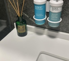 Понравилось оформление ванной комнаты со всеми необходимыми расходниками.