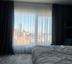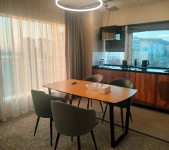 Понравились апартаменты. Уборка, замена полотенец, воды и гигиенических принадлежностей каждый день. Сам номер выглядит хорошо: панорамные окна с видом на город, удобная кровать с большим количеством подушек и мягким постельным бельем.