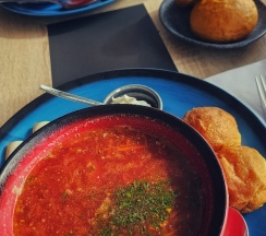 Поселили на 4 этаж, предоставили детскую кроватку . Купили сразу с завтраками сутки. Кровать бронировала одну DBL большую . Пообедали борщом, вкусно. Здесь же и ужинали , можно с коляской сесть💪