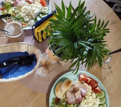 Всё очень понравилось 👍 Спасибо! В домике уютно, тепло, всё есть. Завтраки вкусные, три дня -разные.