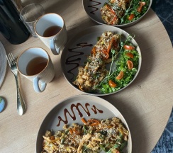 Отдыхали с 29.12.24 по 31 . 12 24, отлично провели время, девчонки ,просто, молодцы, встретили , заселили, накормили, есть кафе своё, очень удобно, еда просто супер, не во всех ресторанах так кормят, завтрак включён в стоимость проживания, а стоимость лучше не найти, на завтрак каждое утро новый и очень вкусный шедевр.Анна и Регина, большое Вам спасибо! Советую всем, не пожалеете.