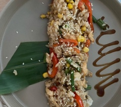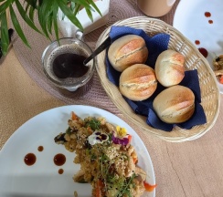 Забронировали по дороге за 3-4 часа. Приехав на место нас заселили. Предложили заказать ужин. Заказали Том Ям, Филадельфия, пасту - сначала опасались, но заказали. Очень вкусный ужин оказался. На утро без альтернативно ризотто мясом и овощами -отличный завтрак!