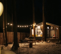 Понравилась база отдыха! Домик SOL уютный с панорамными окнами. На кухне имеется все необходимое. На территории много деревьев, в основном ели и березы.