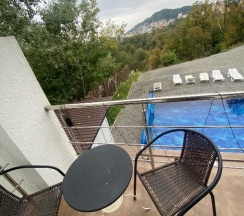Чистые, аккуратные номера, хорошая шумоизоляция, есть кондиционеры, так что в жаркий день вам будет очень комфортно. На территории есть бассейн с которого открывается незабываемый вид на горы и море, а так же волшебный закат по вечерам,(огромный плюс что нет маленьких детей, особенно у бассейна) беседка где можно приготовить покушать на свежем воздухе, мангал для шашлыка/барбекю и многое другое. Есть терасса, отличное место для отдыха! На терассе можно как просто отдохнуть, а так же устроить приятный завтрак/ужин с видом на море.