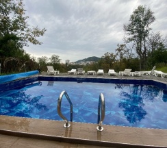 Сама территория прекрасна: есть смотровая площадка, бассейн (каркасный). Видно, что делаются работы по расширению и созданию новых мест для отдыха. Надеюсь, на следующий наш приезд будет сделан тот огромный бассейн)