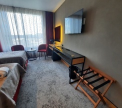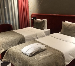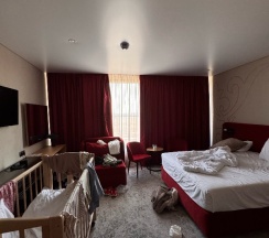 Заехали ночью. Номер улучшенный. На троих. В наличии все что нужно-банные принпдлежности, вода, чай кофе. Отличная кровать. Чисто. Климат контроль в комнате.