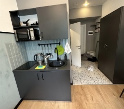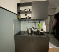 В целом понравилось, наше пребывание в отеле было комфортным , все приятно , начиная с входа общий коридор оформлен эстетично : было относительно тихо , слышимость между номерами можно сказать минимальная по сравнению с другими отелями ; расположение - метро близко , магазины , кафе / рестораны , аптеки , тц, в комнате уютно и приятно находиться , современный интерьер, относительно свежий ремонт , шторы блэк -аут , по утрам высыпались , но немного в затяжках , будто по ним котенок лазил верх-вниз , кровать удобная , покрывало на кровать только непонятное , кусок ткани будто … а так есть все необходимое в комнате: телевизор, холодильник , эл.плита , посуда , чайник кастрюли/ сковородка ( кроме чая , соли , сахара , раст масла , стирального порошка- как бывает во многих апартах уже в наличие , приходится это все покупать кг / пачками из за парочки дней пребывания ). В номерах Немного стены в пятнах , но это придирки скорее … было чуточку прохладно ., но мы привыкшие к такой температуре, нам было самое то . А если вы «мерзляки» вас спасет обогреватель. Все в общей картине хорошо 👌, Но меня удручило лишь пару мелочей: