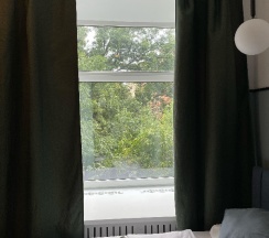 Так же из минусов маленькое одеяло, на 2их было мало, хотя кровать большая и удобная, большое окно и подоконник, плотные шторы не пропускает свет с улицы, очень светит фонарь по ночам с улицы.