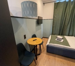 Перейду сразу к плюсам: отличные небольшие номера, в принципе все чистенько, стены конечно уже немного в пятнах, но в целом вид не портит. В номере есть всё необходимое вплоть до полотенец,фена, чайник, холодильник, чашки, ложки, плита, сковорода, тапочки одноразовые, шампунь и гель для душа тоже предоставляют, есть даже в общем пользовании стиральные машинки и комната для глажки одежды👍 Заселение происходит дистанционно все двери (входная общая и дверь в номер) открываются с помощью кодов 🔐 что показалось даже удобно))так же в номере висят Блэк аут шторы, что очень важно если приезжаете сюда в пик белых ночей!