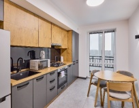 Всё супер! Свежий и чистый номер. Всё есть: стиралка, фен, утюг, чайник, микроволновка, посуда, одноразовые тапочки, полотенца. При заселении имеется шампунь, мыло, гель для душа, капсулы для стирки - но не пополняются. Заселение с депозитом, при выезде возвращается. Рядом парк, заезд на косу
