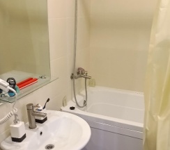 Приветливый персонал. Номер уютный, чистый. Хороший ремонт. Из посуды в номере: одна небольшая чашка, блюдце и чайная ложка. Можно было бы добавить столовые приборы и тарелку. Есть холодильник, чайник, фен. В коридоре стоит кулер с водой.