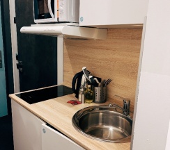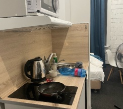 Удобная локация в самом центре. Рядом и знаменитые достопримечательности, и магазины, и кафе! Рекомендую. В номере предусмотрено всё, в кухонном уголке с легкостью можно приготовить завтрак и отправляться на прогулку!