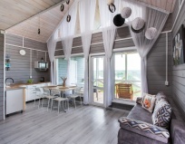 Отдыхали в составе 3 взрослых и ребёнок, домик небольшой, но вполне удобно для небольшой семьи. 2 комфортабельные спальни и кухня-гостиная оснащены всем что нужно. Особо хотелось выделить шикарный вид на реку с большой террасы, погода была по-летнему прекрасна и мы ужинали, любуясь на заход солнца. Мангальная зона прям «лобное место», мы долго сидели у костра и наблюдали за спускающемся туманом над рекой. Спасибо хозяевам за такое прекрасное размещение, мы отлично отдохнули.