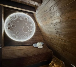 И апофеозом интерьерного решения домика является огромная рукотворная луна, очень реалистичная и красивая!