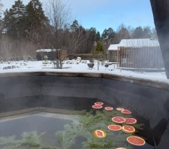 И да, мы выбрали чан. Чан летом, во первых лето так себе 😕 во вторых, чан разогревают до комфортной температуры. В холод ❄️ это великолепный контраст горячего чана и морозного воздуха. Летом же комфортная температура,он теплый.