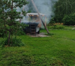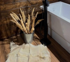 Так же брали светлую баньку, жарит хорошо)) только не понравился веник(слишком лысенький) опал после пары шлепков, но это не испортило настроения т.к. брали баньку погреться и не думали париться, еще хотелось бы шторку на большое панорамное окно.