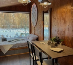 Отдыхали в домике Луна в октябре. Все понравилось, территория ухожена, все красиво оформлено, внутри домика очень уютно и все продумано до мелочей. Сходили в купель, очень расслабляет. Очень удобный матрас для сна! Погулять рядом особо негде, но мы эту цель и не преследовали. Обязательно приедем ещё, спасибо!