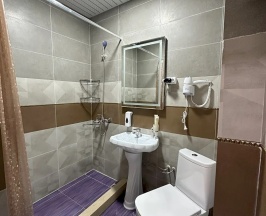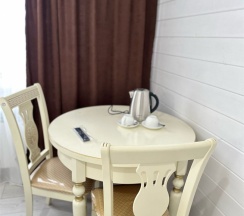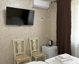 В номере: 2 кровати (90х190 см), тумбочка, шкаф, стол, стулья, санузел с душевой кабиной, телевизор, чайник.