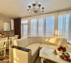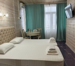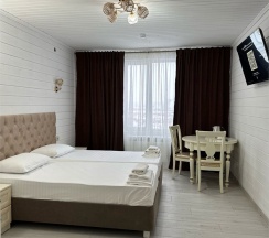 Комфортабельный семейный 2-х комнатный номер с балконом с видом на море с собственной душевой комнатой и санузлом, спальные места оборудованы высокими ортопедическими матрацами, белоснежное белье, гипоаллергенные подушки и одеяла. Кондиционер в каждой комнате. Телевизор смарт ТВ. Холодильник. Чайник. Фен. Банные полотенца и полотенца для лица.