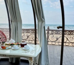 Хороший отель, территория просторная на берегу моря. Проживали в 1 коттедже, со всех окон открывается потрясающий вид на море и на экраноплан лунь. Во дворе коттеджа качели, мангал, столы, стулья, но самое приятное это купель с морской водой. Сам коттедж оборудован всем необходимым. Обязательно вернемся 😎