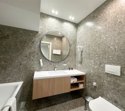 К удобству гостей предлагается двуспальная кровать с ортопедическим матрасом, большой диван, который можно использовать как дополнительное место, большая ванная комната. К приезду гостей мы подготовим тапочки, халаты и бутилированную воду.