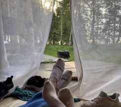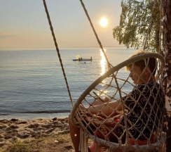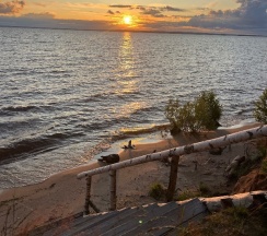 Очень понравилась огромная территория и масса занятий, которые включены! Это и велосипеды и сапы и рыбалка и катамаран, также сходили на мастер класс, в баню чум, кинотеатр и поучаствовали в квизе. Мы даже не успели обойти всю территорию и искупаться в бассейне! Обязательно нужно вернуться летом! А еще нам повезло-грибы росли прямо на тропинках! Чудо. Берег красивый с лавочками и качелями, душ на территории, но никогда не было очереди и внимание!!! Всегда горячая вода. Еда тоже понравилась, все вкусно и много. Спали в 3 х местном шатре, теплые простыни это что то! Комфорт как дома! У каждого шатра своя территория со столом и мангалом, также уголь бесплатно сколько нужно. Душевно, чисто, красиво и нереальные морские закаты! Рекомендую от души!!!