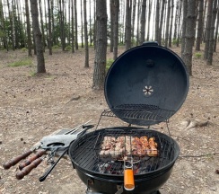 Все есть необходимое для шашлыка ( если что ребята выдают все и даже если закончился мешок угля , они принесут еще ) , и есть свое кафе , где можно взять посуду , напитки и если самим лень готовить , покушать ) на территории много уютных местечек , гамаки и пуфы , можно порыбачить и прокатиться по озеру на катамаране!)